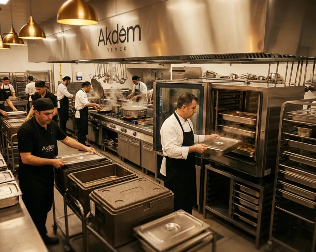 Akdem Yemek olarak kurulduğumuz günden bu yana kurumlara güvenilir, hijyenik ve kaliteli toplu yemek hizmeti sunmayı hedefliyoruz. Deneyimli mutfak ekibimiz, modern üretim altyapımız ve titizlikle planlanan operasyon süreçlerimiz sayesinde her gün binlerce kişiye aynı özenle hazırlanan yemekleri ulaştırıyoruz. Amacımız yalnızca yemek üretmek değil, hizmet verdiğimiz kurumların günlük yaşamına değer katan sürdürülebilir ve güvenilir bir yemek hizmeti sunmaktır.