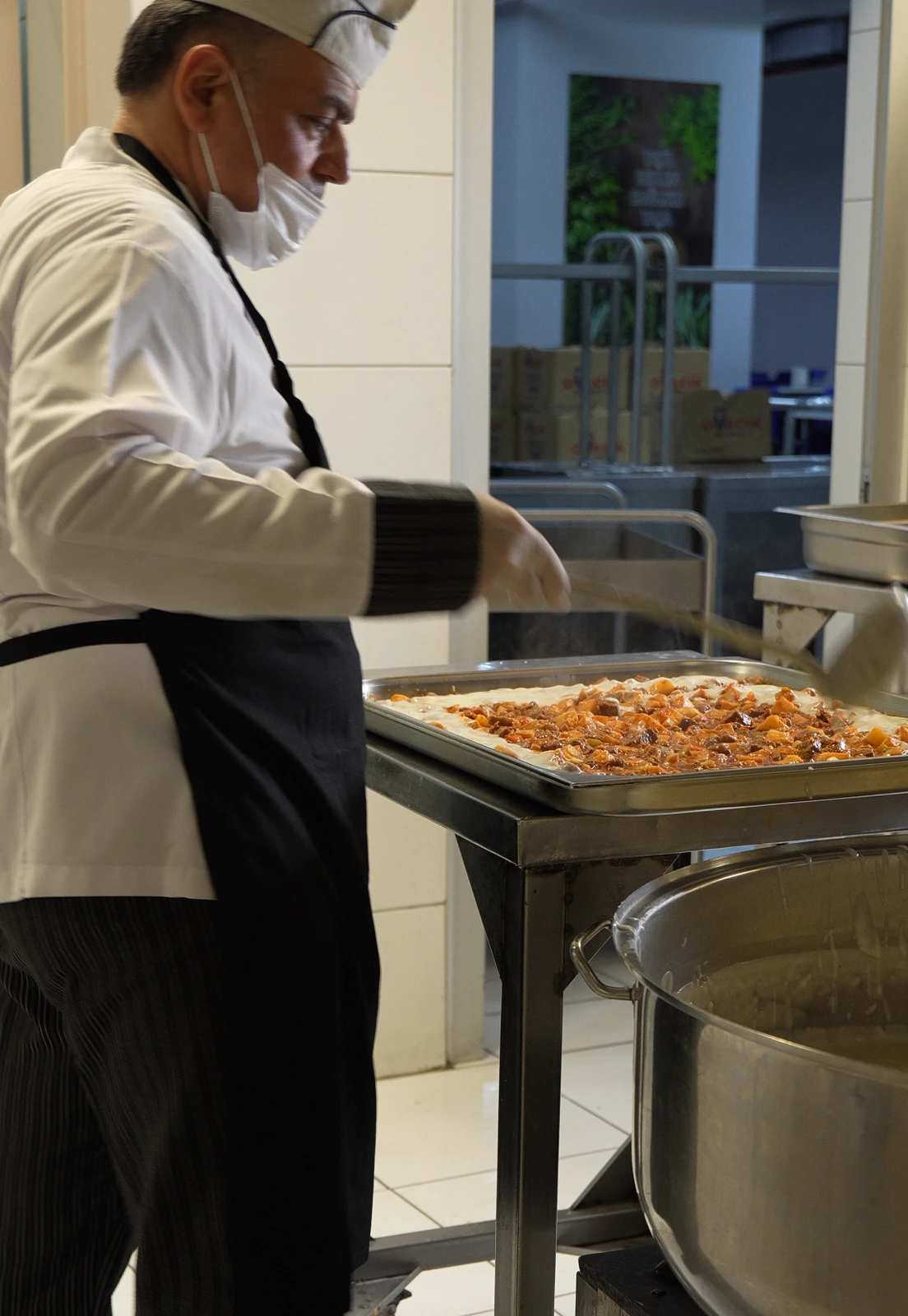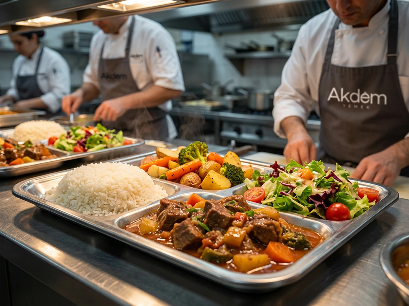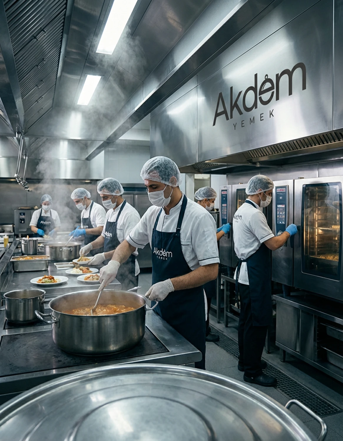 Akdem Yemek’in profesyonel mutfağında her gün yüzlerce kişilik üretim, aynı titizlik ve kalite anlayışıyla hazırlanır. Hijyen standartlarına uygun modern mutfak altyapımız ve deneyimli ekibimiz sayesinde yemek üretiminden servise kadar tüm süreçler özenle yürütülür. Bu galeride; üretim süreçlerimizden, mutfak hazırlıklarından ve organizasyon hizmetlerimizden kareleri inceleyebilir, Akdem Yemek’in kalite anlayışını yakından görebilirsiniz. Her fotoğraf, lezzetin arkasındaki emeği ve profesyonelliği yansıtmaktadır.