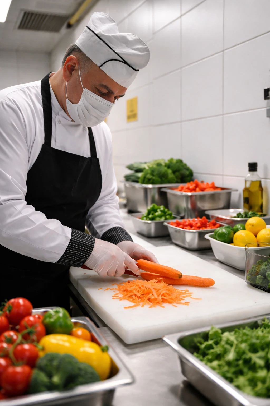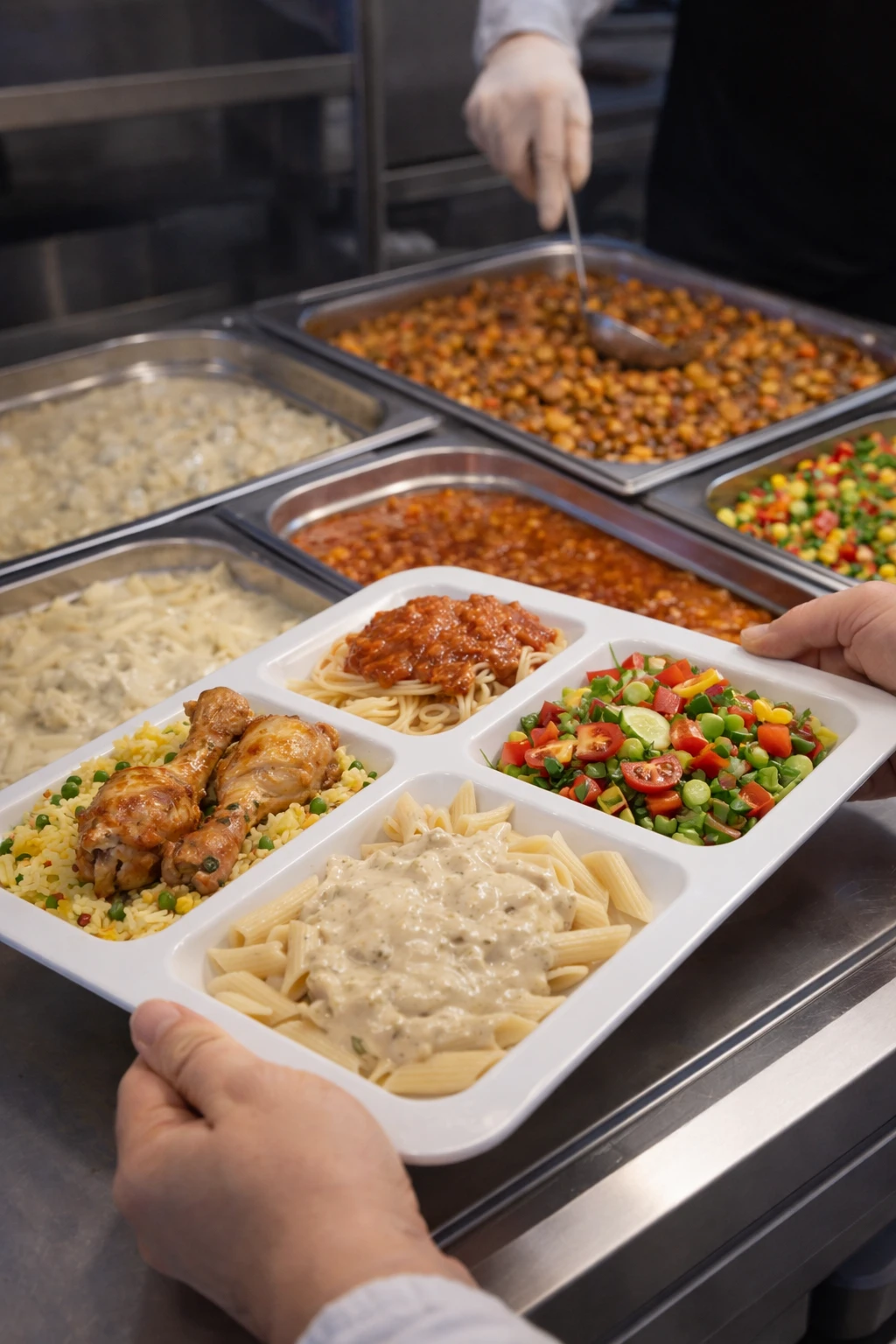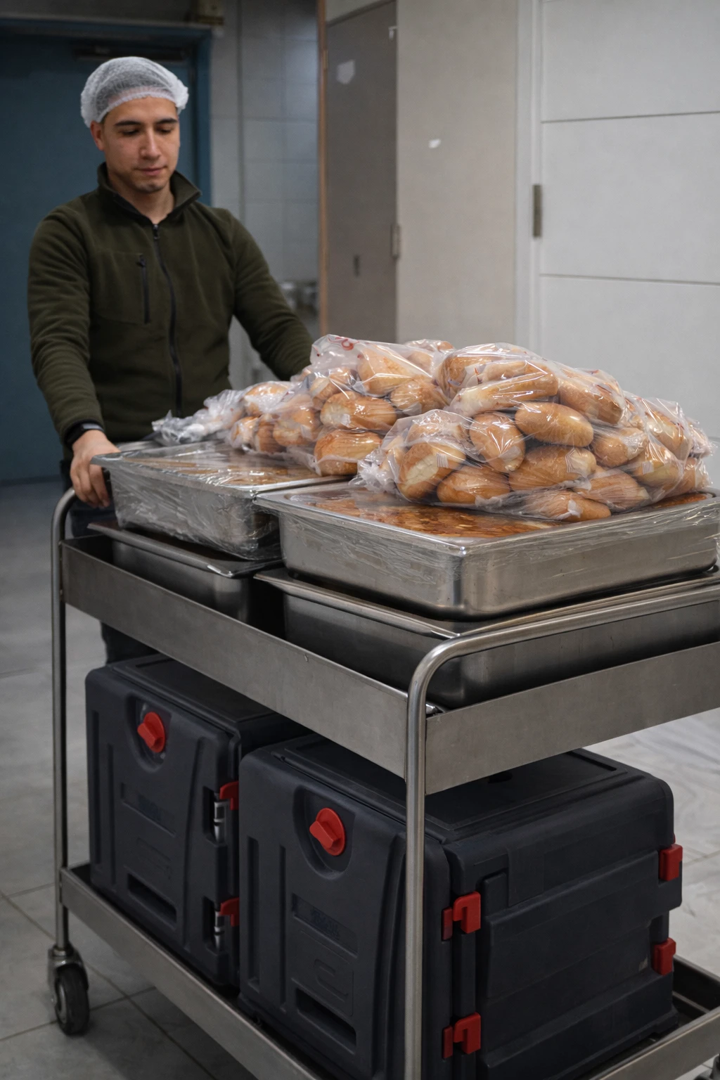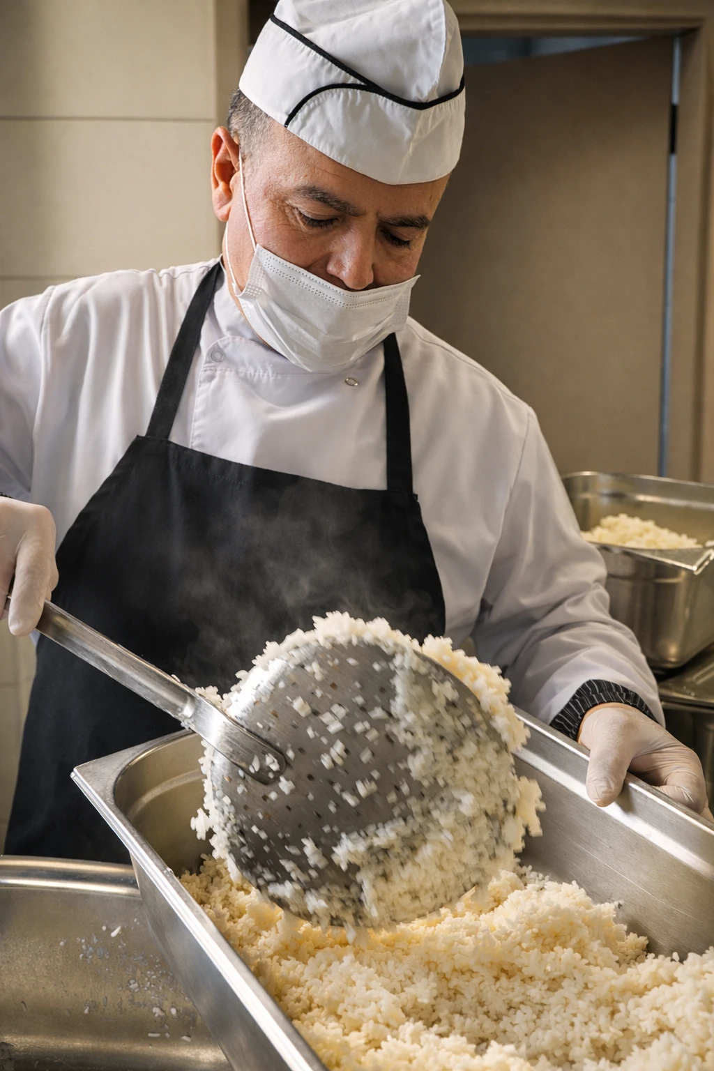 Akdem Yemek’in profesyonel mutfağında her gün yüzlerce kişilik üretim, aynı titizlik ve kalite anlayışıyla hazırlanır. Hijyen standartlarına uygun modern mutfak altyapımız ve deneyimli ekibimiz sayesinde yemek üretiminden servise kadar tüm süreçler özenle yürütülür. Bu galeride; üretim süreçlerimizden, mutfak hazırlıklarından ve organizasyon hizmetlerimizden kareleri inceleyebilir, Akdem Yemek’in kalite anlayışını yakından görebilirsiniz. Her fotoğraf, lezzetin arkasındaki emeği ve profesyonelliği yansıtmaktadır.